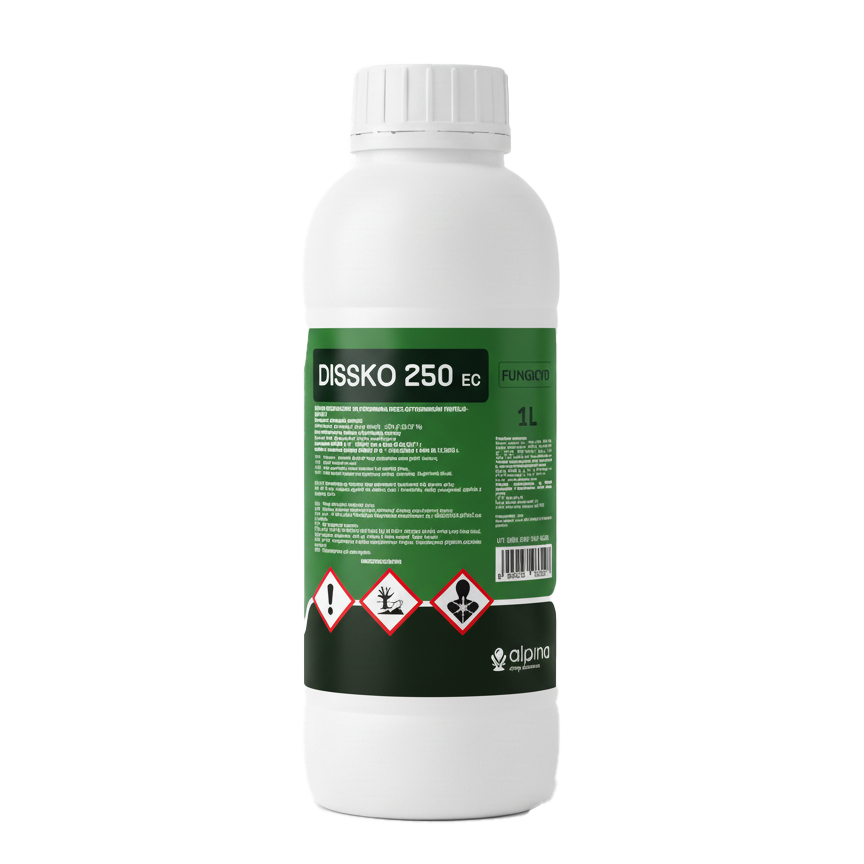 Dissko 250 EC to systemiczny fungicyd triazolowy w formie koncentratu do sporządzania emulsji wodnej. Zaprojektowany do skutecznej ochrony sadów, plantacji jagodowych, warzyw korzeniowych i buraka pastewnego przed najważniejszymi chorobami liści i owoców.